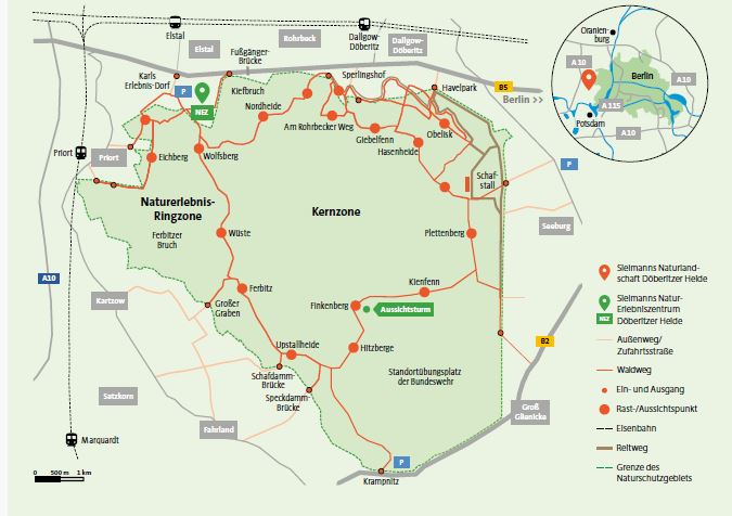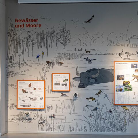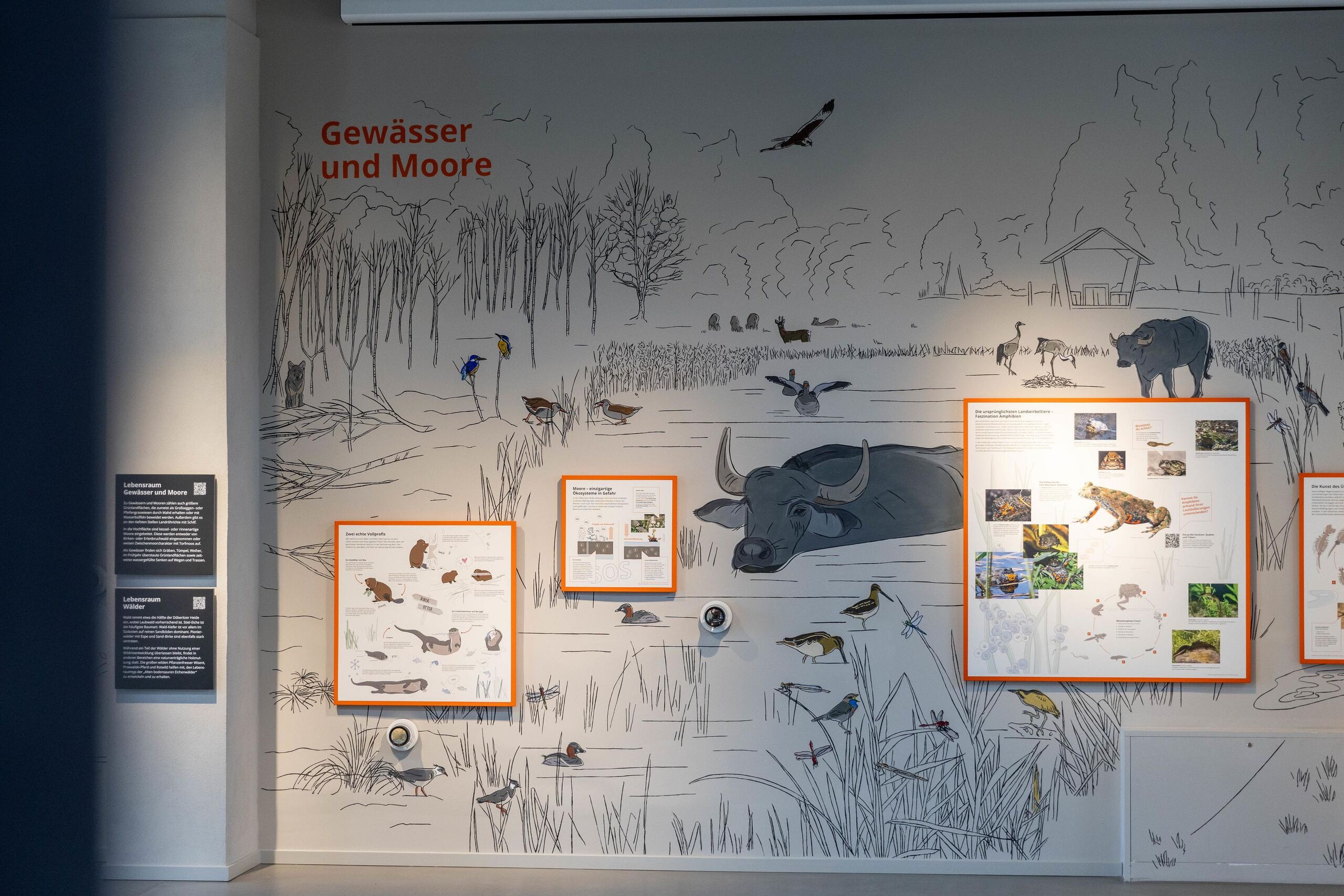 Das Natur-Erlebniszentrum Döberitzer Heide befindet sich inmitten eines europäischen Schutzgebiets. In der 2024 eröffneten Bildungseinrichtung erfahren Naturbegeisterte in einer multimedialen Ausstellung vieles über die reiche Artenvielfalt der Döberitzer Heide. Eine einzigartige Wandmalerei der hiesigen Tier- und Pflanzenwelt lässt Sie in die bislang verborgene Seite der Döberitzer Heide eintauchen, leicht verständliche Infotafeln und hochaufgelöste Naturfilme vermitteln großen und kleinen Gästen besondere Naturgeschichten. Bestaunen Sie Wisent, Przewalski-Pferd, Rothirsch und Wolf in Lebensgröße und testen Sie Ihr Wissen in einem interaktiven Quiz. Erkunden Sie die Ausstellung und das Außengelände mithilfe der integrierten Naturerlebnis-App und erleben Sie die Döberitzer Heide aus einer völlig neuen Perspektive.