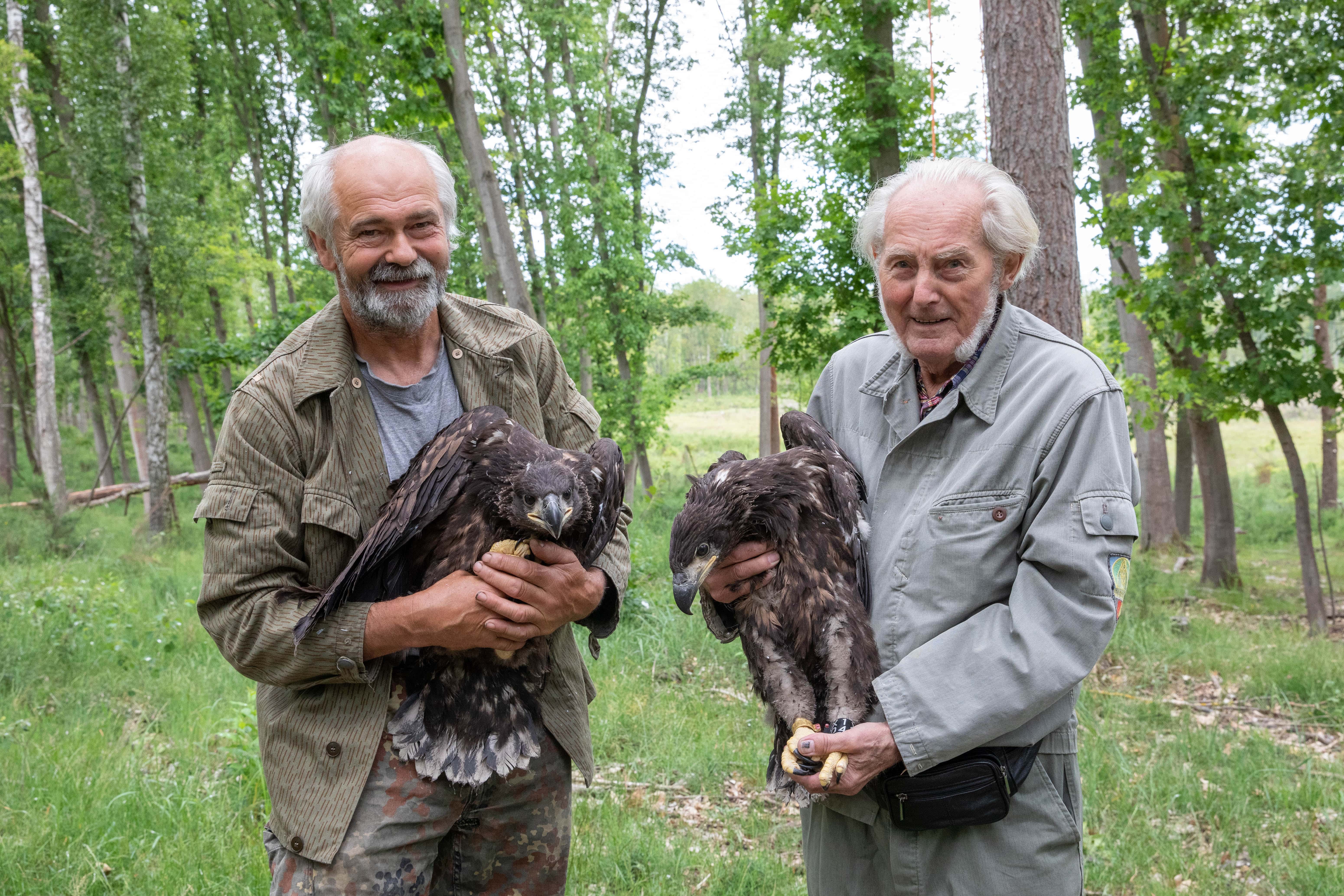 „Es hat alles gut geklappt“, freut sich Horst Köpke, langjähriger Horstbetreuer der großen Greifvögel in Sielmanns Naturlandschaft Döberitzer Heide. Seit 2006 kümmert er sich um die Beringung der jungen Adler, meist Seeadler. Seit 1997 ist das Seeadlerpaar registriert, das er regelmäßig in der Döberitzer Heide beobachtet. Auch junge Fischadler hat Horst Köpke zusammen mit dem Kollegen Günther Lohmann in Sielmanns Naturlandschaft Döberitzer Heide schon beringt. In diesem Jahr ist der Horst des Fischadlers jedoch nicht besetzt. In den vergangenen Jahren war das künstlich errichtete Nest fast immer bewohnt, allerdings gab es seit Beginn der Beobachtungen erst zweimal eine erfolgreiche Brut. 2017 und 2018 konnten jeweils zwei junge Fischadler beringt werden.