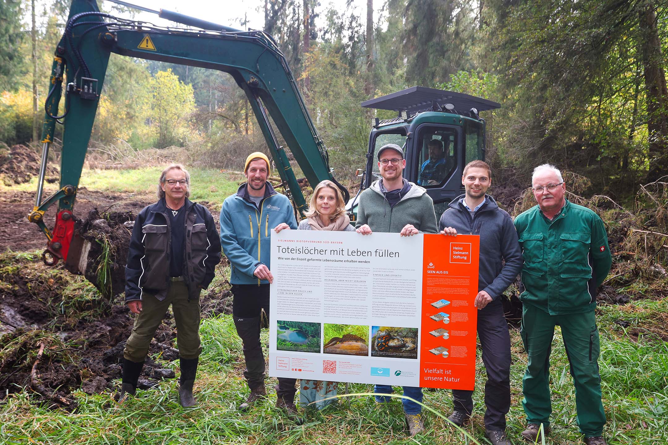 Rund eineinhalb Kilometer nördlich von Wörthsee im Landkreis Starnberg haben Vertreter:innen der Heinz Sielmann Stiftung, der Margarete-Ammon-Stiftung, der Bayerischen Staatsforsten sowie der Unteren Naturschutzbehörde gestern den Beginn eines neuen Amphibienschutzprojekts verkündet. Die Verantwortlichen erläuterten vor Ort die geplanten Maßnahmen und präsentierten eine neu erstellte Informationstafel. Diese wird an einer der Projektflächen aufgestellt und bietet Interessierten die Möglichkeit, sich über das Projekt und die damit verbundenen Toteislöcher zu informieren.