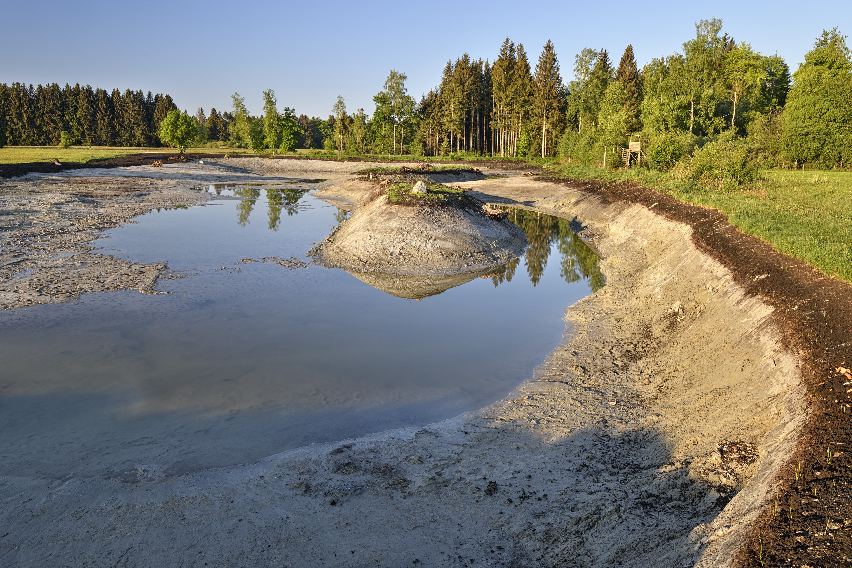 „Wir freuen uns sehr, mit dem neuen Stillgewässer im Naturschutzgebiet Ruhestetter Ried einen wertvollen Beitrag zum Natur- und Artenschutz in der Region zu leisten“, so Julia Brantner, Projektleiterin der Heinz Sielmann Stiftung am Bodensee. Zwischen Ende Februar bis Mitte Mai 2020 wurden etwa 15.000 m³ Boden ausgehoben. Das Gewässer wurde mit verschiedenen Tiefenzonen und zwei Brutinseln modelliert. Grund- und Schichtwasser speist den Weiher, der sich in den kommenden Wochen nun füllen wird.