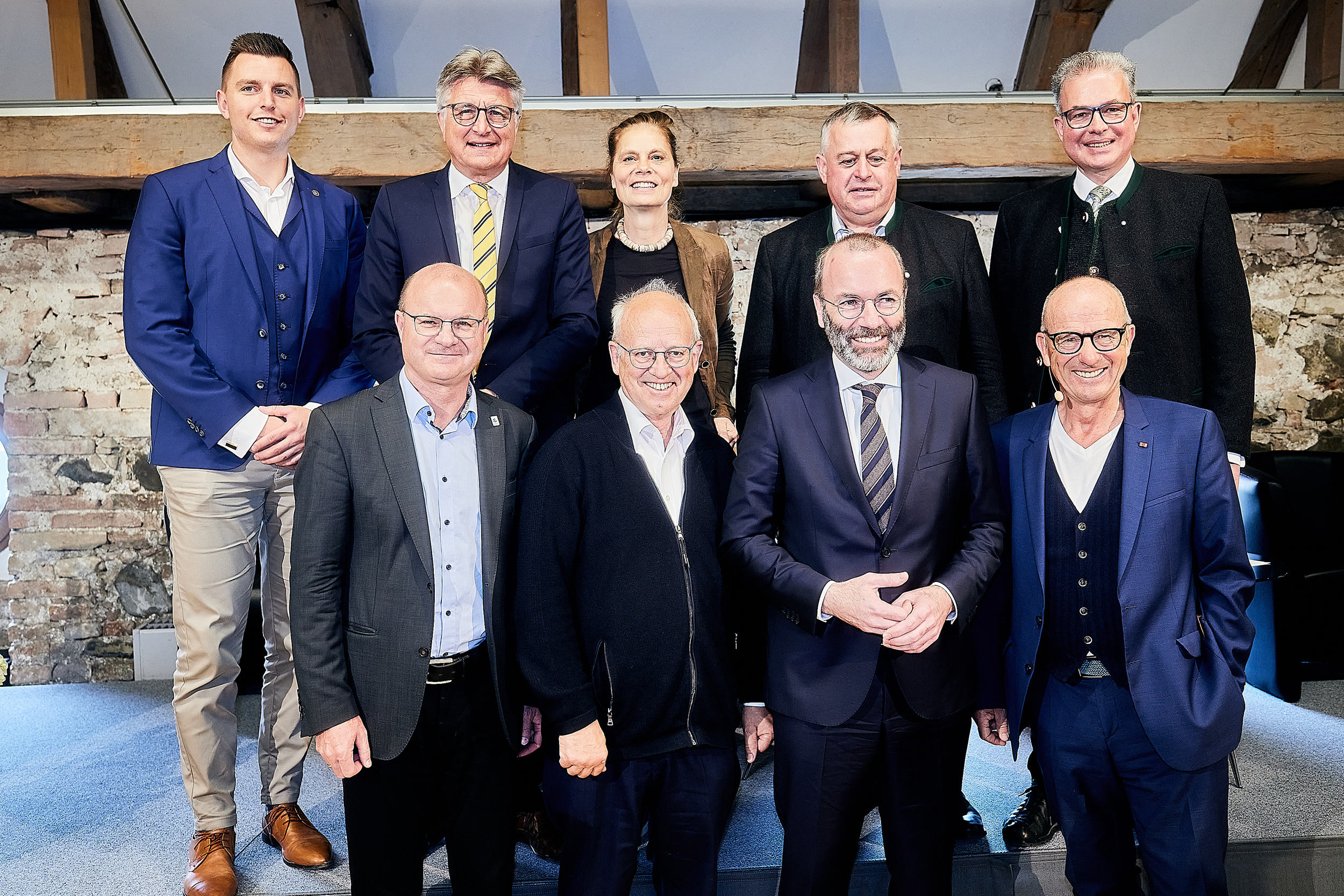 Gruppenfoto mit den Symposiumsteilnehmern bei den Benediktbeurer Gesprächen 2023.   Obere Reihe von links: Benedikt Hartmann, Dr. Fritz Brickwedde, Sarah Wiener, Walter Heidl, Florian Streibl. Untere Reihe von links: Dr. Norbert Schäffer, Pater Karl Geißinger, Manfred Weber, Dr. Lutz Spandau© Manfred Neubauer / neubauer-foto.de