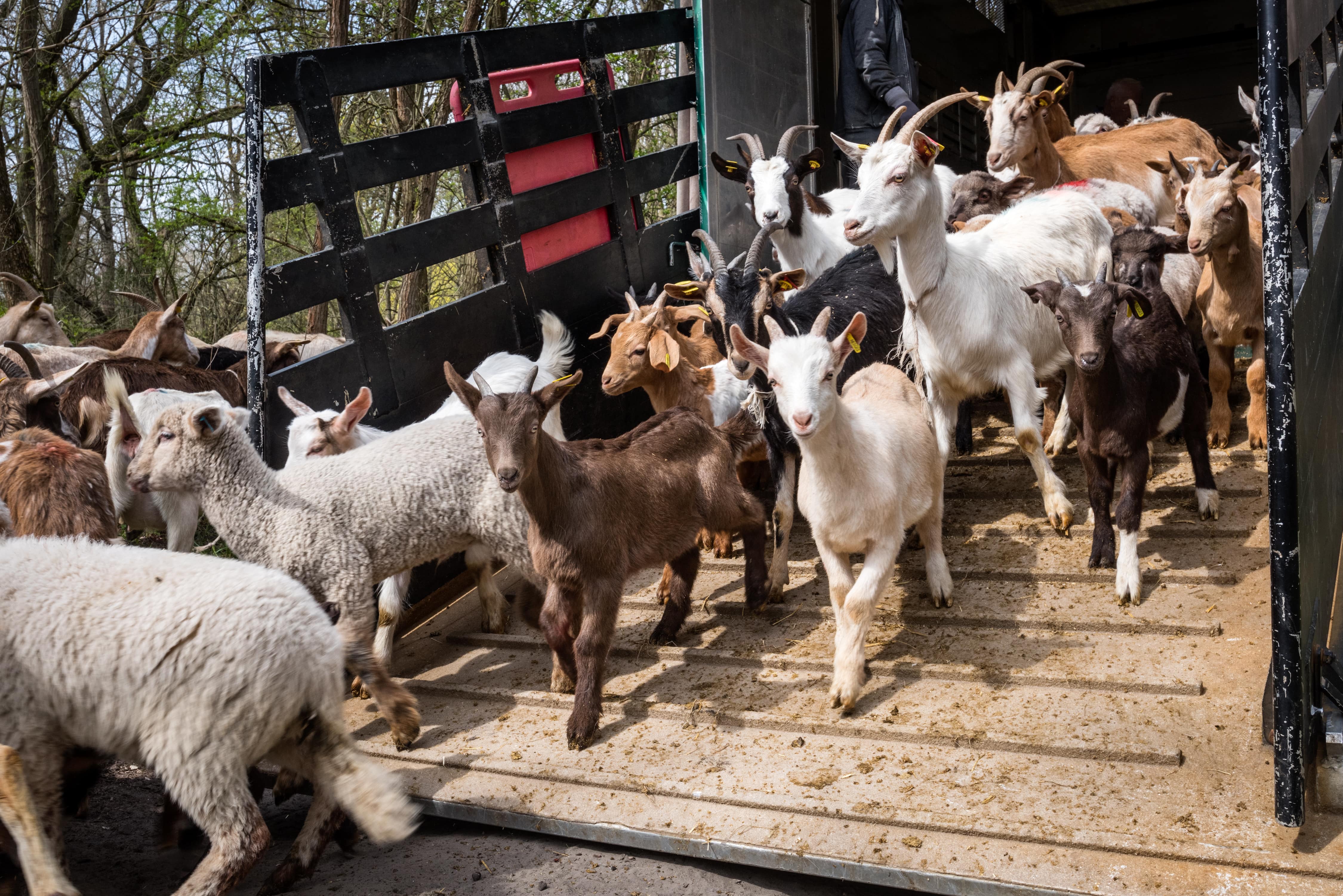Die erste Herde hat Nesges bereits am 1. April gebracht, eine weitere kleine Gruppe von Schafen und Ziegen ist Mitte April in der Nordheide des ehemaligen Truppenübungsplatzes angekommen. In großen Transportern stehen die Tiere während der Fahrt auf mehreren Ebenen. Diese können für das Auf- und Abladen wie ein Fahrstuhl bewegt werden. Die Technik vergrößert die Ladekapazitäten und hat den Vorteil, dass das Abladen grüppchenweise von statten geht. So entsteht kein gefährliches Gedrängel.