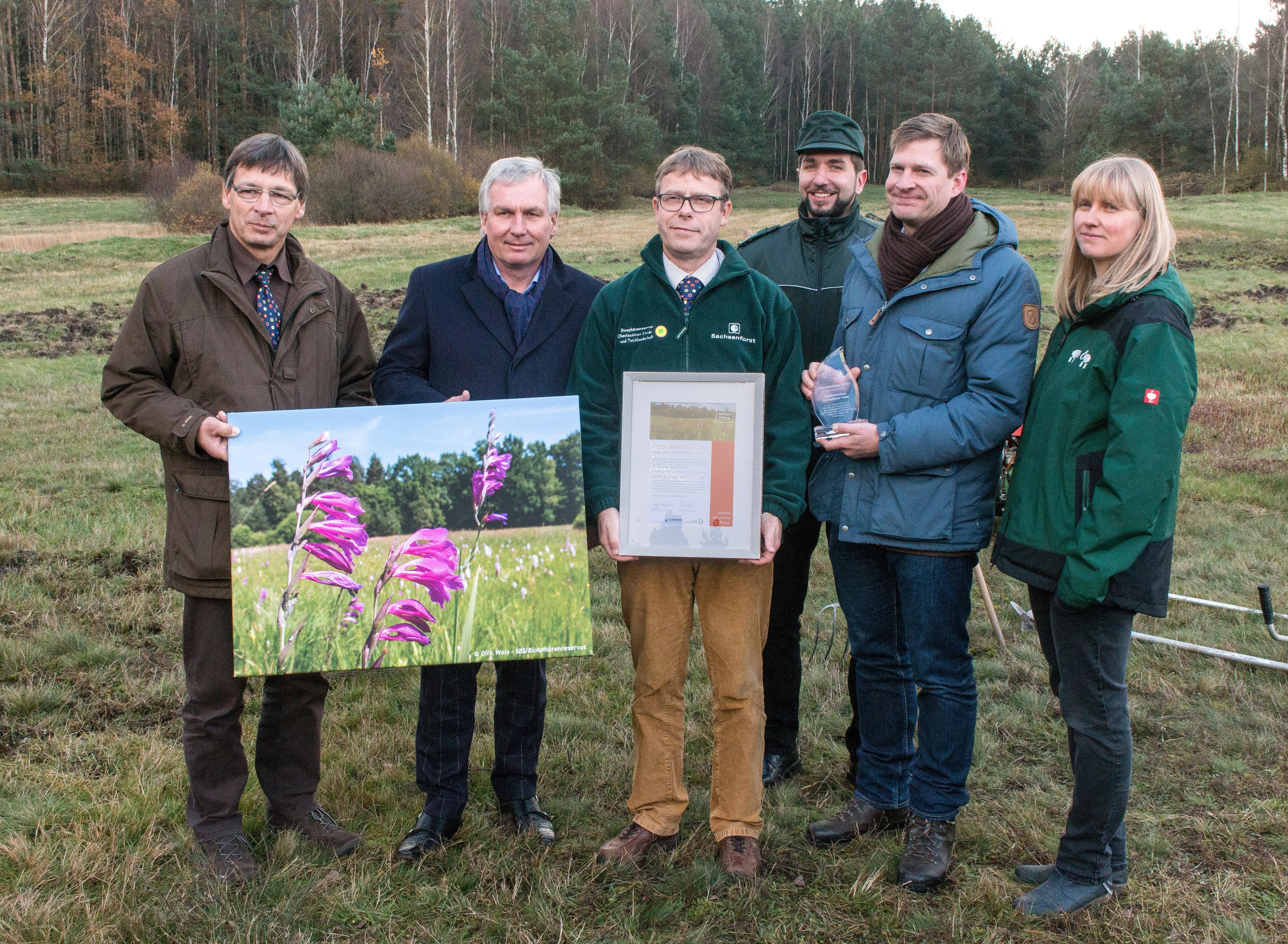 „Wiesen sind wertvolle Kulturbiotope, welche zahlreichen seltenen Arten einen Lebensraum bieten. Und sie müssen regelmäßig gepflegt werden und brauchen daher unsere besondere Aufmerksamkeit“, so Guido Puhlmann. Mit der Auszeichnung der Gladiolenwiese wird stellvertretend das große Engagement von haupt- und ehrenamtlichen Naturschützern gewürdigt, welche diese Kleinode der Kulturlandschaft durch ihren Einsatz erhalten. Auch jetzt ist die Wiese im Daubaner Wald wieder fachgerecht gemäht, die Gladiolenzwiebeln ruhen im Boden und warten auf den nächsten Sommer, um in voller Pracht zu erblühen.