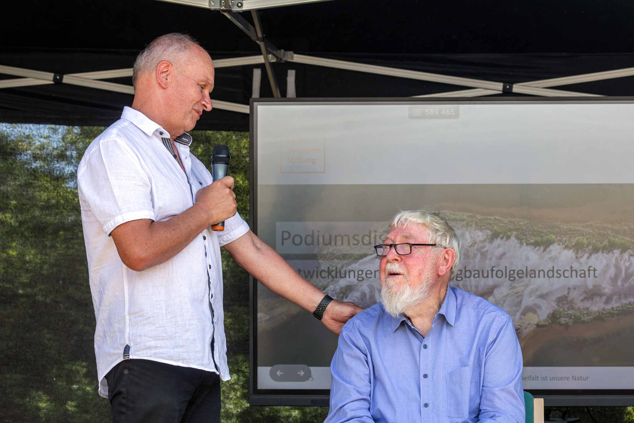 Dr.-Ing. E.h. Fritz Brickwedde,Vorsitzender des Stiftungsrats der Heinz Sielmann Stiftung, erinnerte in seiner Begrüßungsrede daran, wie die Stiftung im Sommer 2000 die ersten 772 Hektar in der stillgelegten Tagebaulandschaft rund um das ehemalige Dorf Wanninchen erwarb. Diese Flächenkäufe bildeten zugleich den Startschuss für die weitere Naturschutzarbeit der Stiftung im Land Brandenburg.