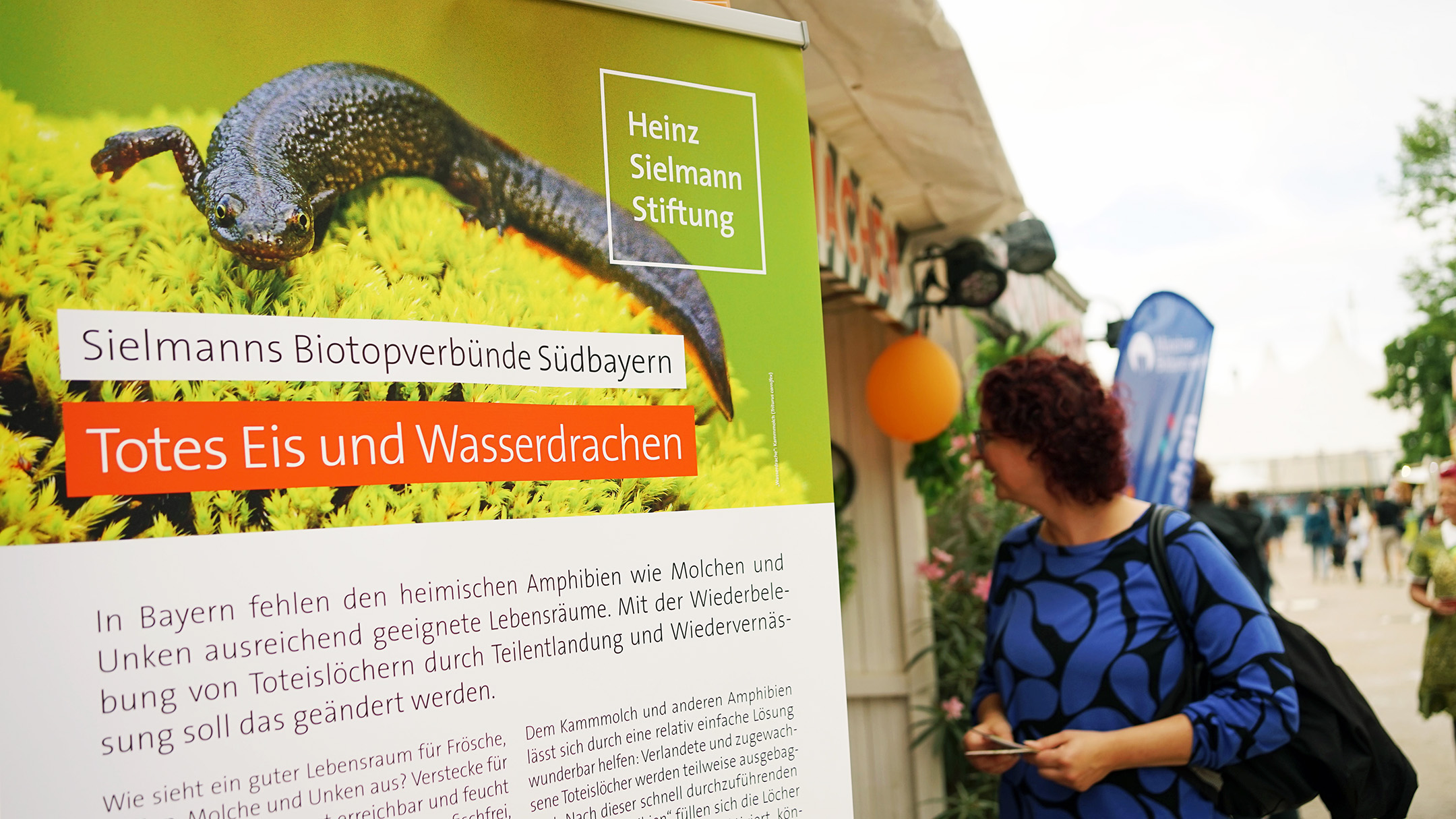 Welche Amphibienarten sind in Bayern heimisch? Was ist ein Reproduktionszyklus? Antworten auf diese und weitere Fragen erhielten Kinder und Erwachsene im orangenen Pavillon des diesjährigen Tollwood Sommerfestivals. Dort stellte die Heinz Sielmann Stiftung den Amphibienverbund Südbayern vor – ein großes Naturschutzprojekt südlich von München, das von der Margarete-Ammon-Stiftung finanziert wird.