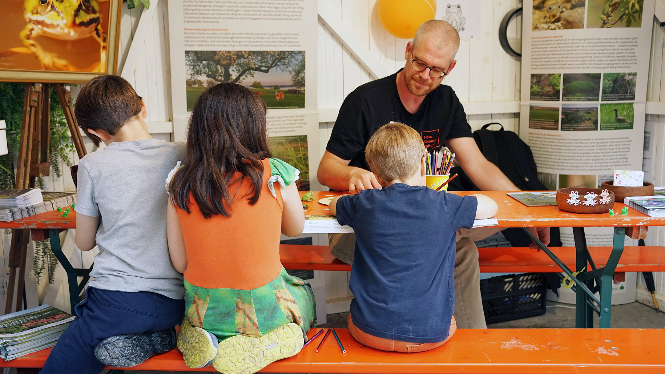 Wippermann und Mitarbeiter Andreas Nemetz hatten für das Festival einen Themenstand entworfen, der alle Sinne der Besucherinnen und Besucher ansprach: Aus einer Box erklangen Froschquaken, ein großformatiges Froschporträt – aufgenommen an einem der neu angelegten Weiher – und farbenfrohe Mandalas zum Ausmalen sprachen die Augen an. Zum Naschen gab es kleine, süße Frösche. „Wir sind mit vielen Menschen über den Naturschutz und unsere Arbeit ins Gespräch gekommen. Das war eine bereichernde Erfahrung“, resümiert Wippermann.