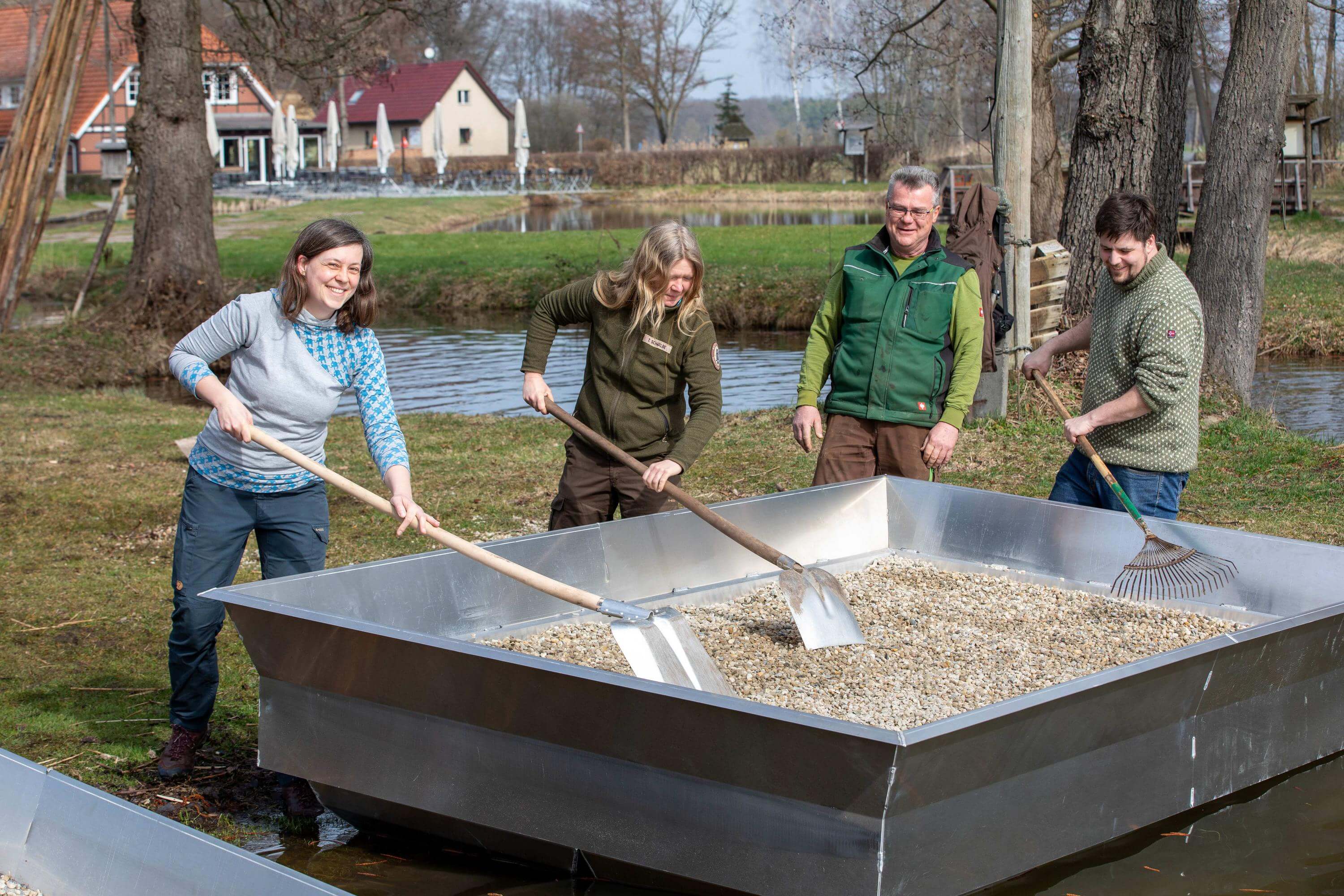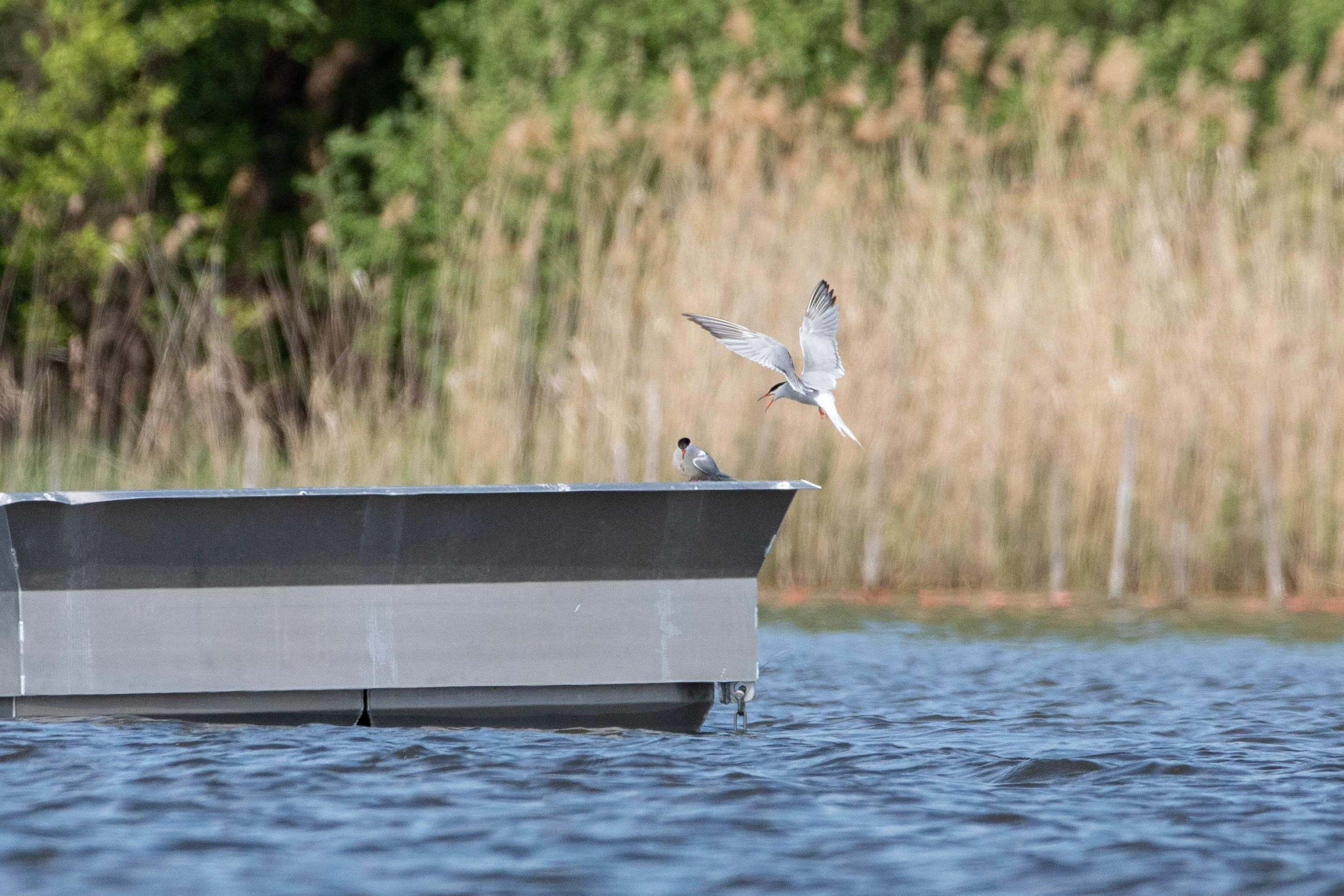 Bislang diente den möwenartigen Vögeln ein metallener Fischerkahn als Brutplatz. Er bot gute Bedingungen, denn die Flussseeschwalben mögen zum Brüten einen vegetationsfreien Platz in ungestörter Lage auf dem Wasser. Doch der Platz im Kahn war begrenzt. Nun stehen den Vögeln zwei neue Brutinseln mit jeweils zwei mal drei Metern Fläche zur Verfügung.
