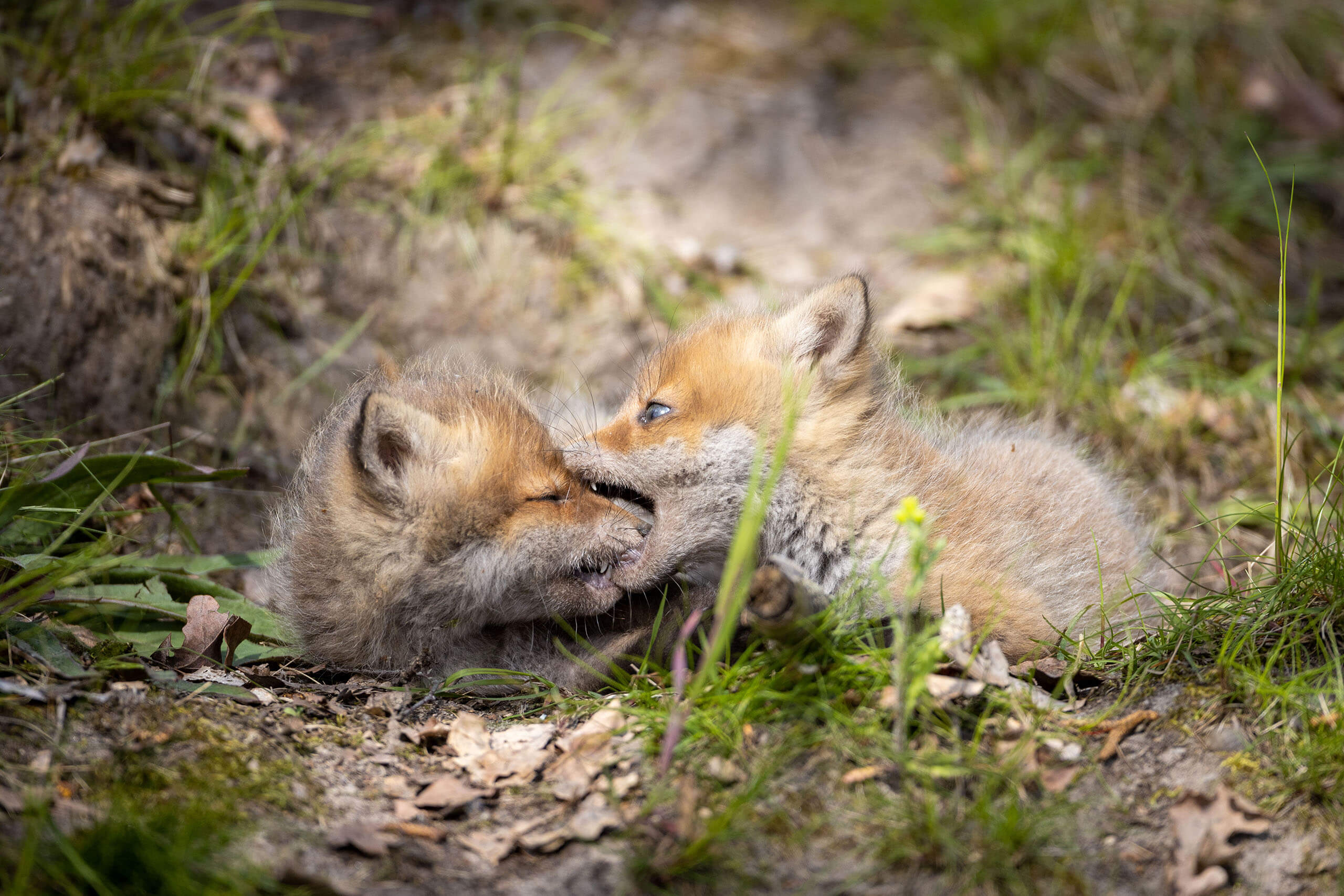 „Das flauschige Fell der Füchse zeigt, dass sie noch sehr jung sind, geschätzt vier bis sechs Wochen alt“, erklärt Peter Nitschke, Leiter der Sielmanns Naturlandschaft Döberitzer Heide. Bis zu zwölf Wochen werden die Jungen von der Fähe, wie der weibliche Fuchs genannt wird, gesäugt. Bereits nach vier Wochen beginnen sie, den Fuchsbau eigenständig zu verlassen und die Umgebung zu erkunden. Spielerisch trainieren sie ihre Muskulatur und Beweglichkeit für später, wenn sie selbst auf Beutezug gehen. Ab einem Alter von drei bis vier Monaten sind sie in der Lage, Nahrung selbständig zu fangen und zu fressen.