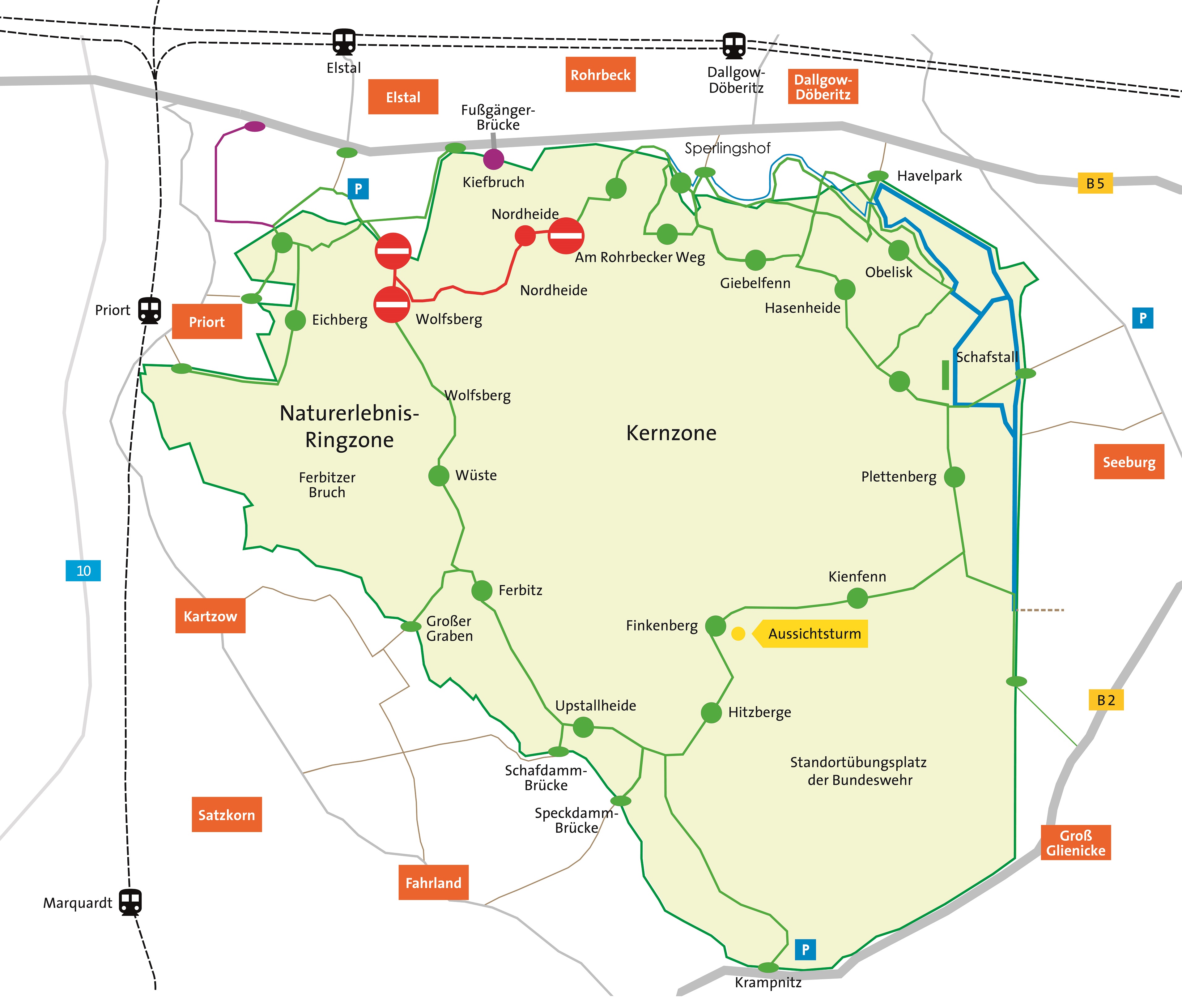Vom Eingang am Havelpark sind die Wege zur Hasenheide und in den nordöstlichen Teil der Sielmanns Naturlandschaft Döberitzer Heide wieder frei. Auch der Rastplatz „Wüste“ ist von Süden her wieder erreichbar. Nur die Sperrungen in Elstal vom Eingang bis zum Wolfsberg sowie in Richtung Nordheide bleiben noch bis April bestehen. Der Rundweg um die Kernzone ist vom Eingang Elstal deshalb erst ab April wieder rundum begehbar.